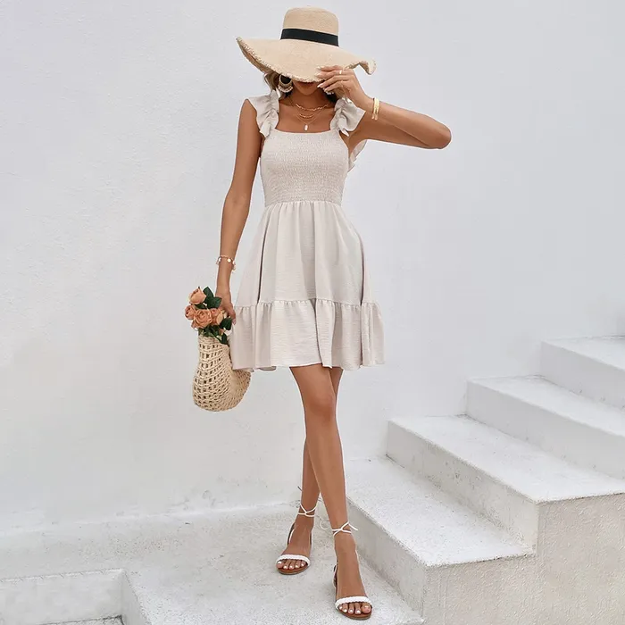 European & American Cross-Border French Elegance Resort-Style Dress Beach Vacation Design-Forward Little Dress for Girls