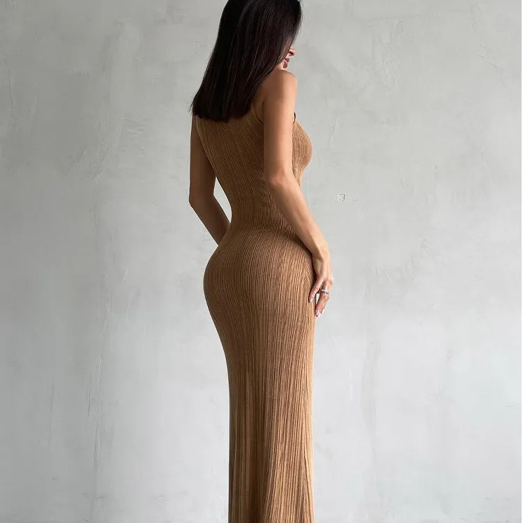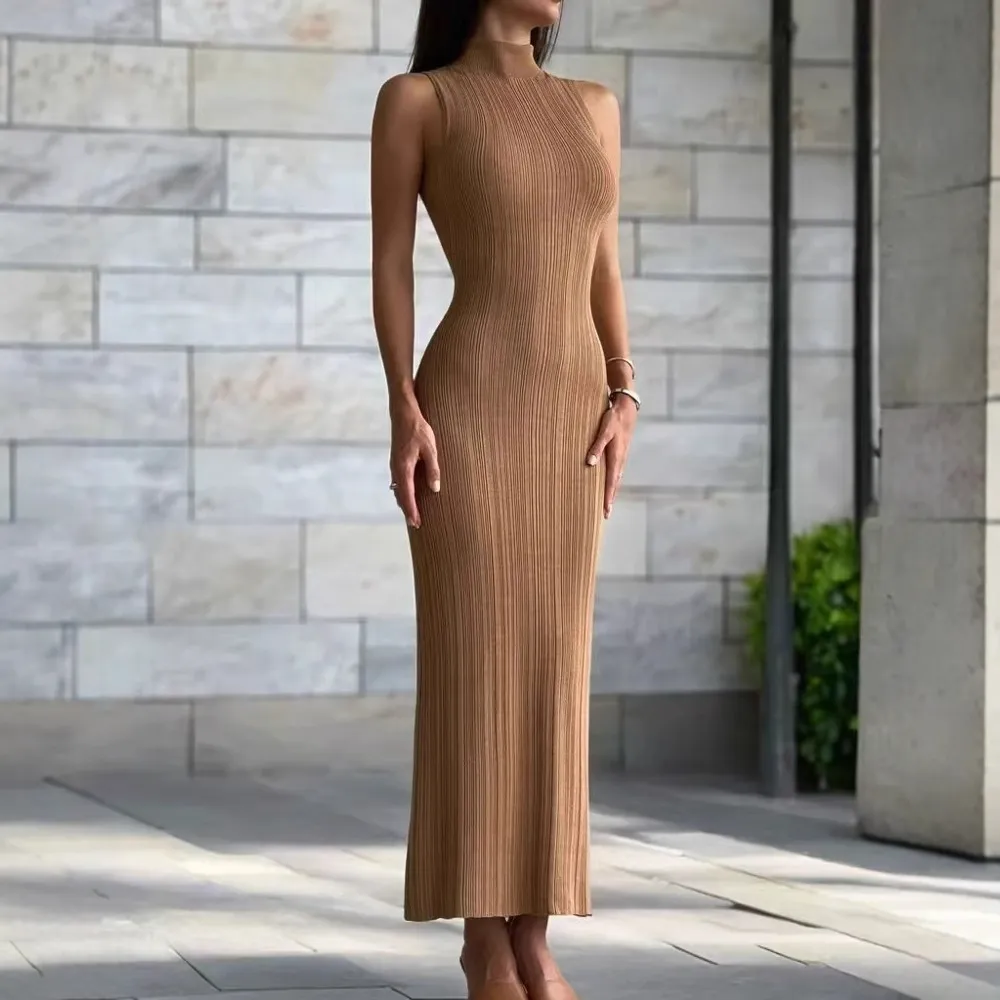 European & American Knit Turtleneck Sleeveless Bodycon Dress Spring/Summer New Arrival Midi Length Dress Elegant French-Style European & American Dress for Women